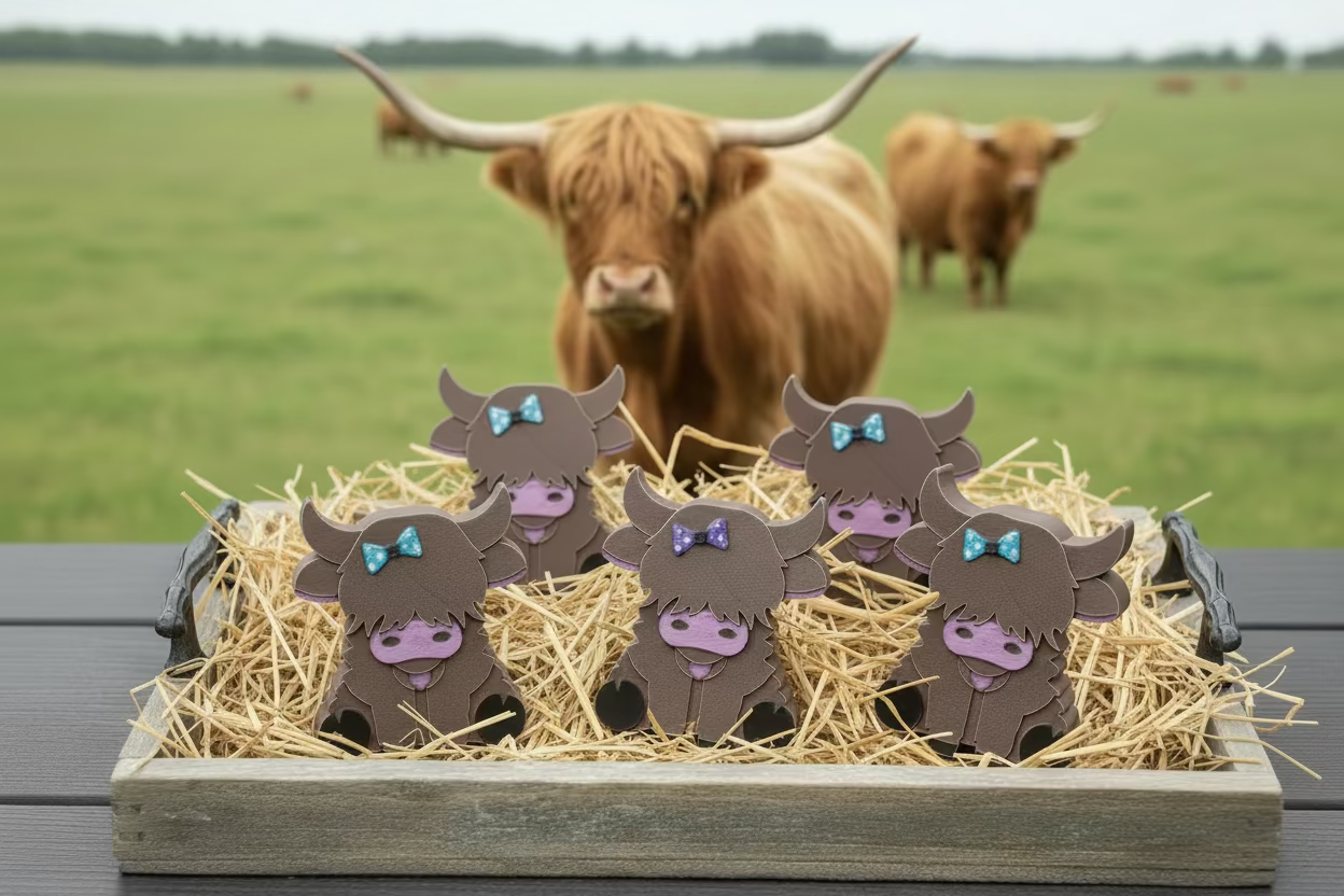 How cute are these?! Who doesn't love a Highland Cow? Now you can bring the fun into your kitchen, bathroom or guest bathroom and to your friends. Made with non-detergent goat milk soap base, premium fragrance oils and hand painted with body safe mica powders. Choose your color of bow...just message us with your choices and we will do our best to accommodate your wishes. These make great gifts. Choose several and create your own herd!