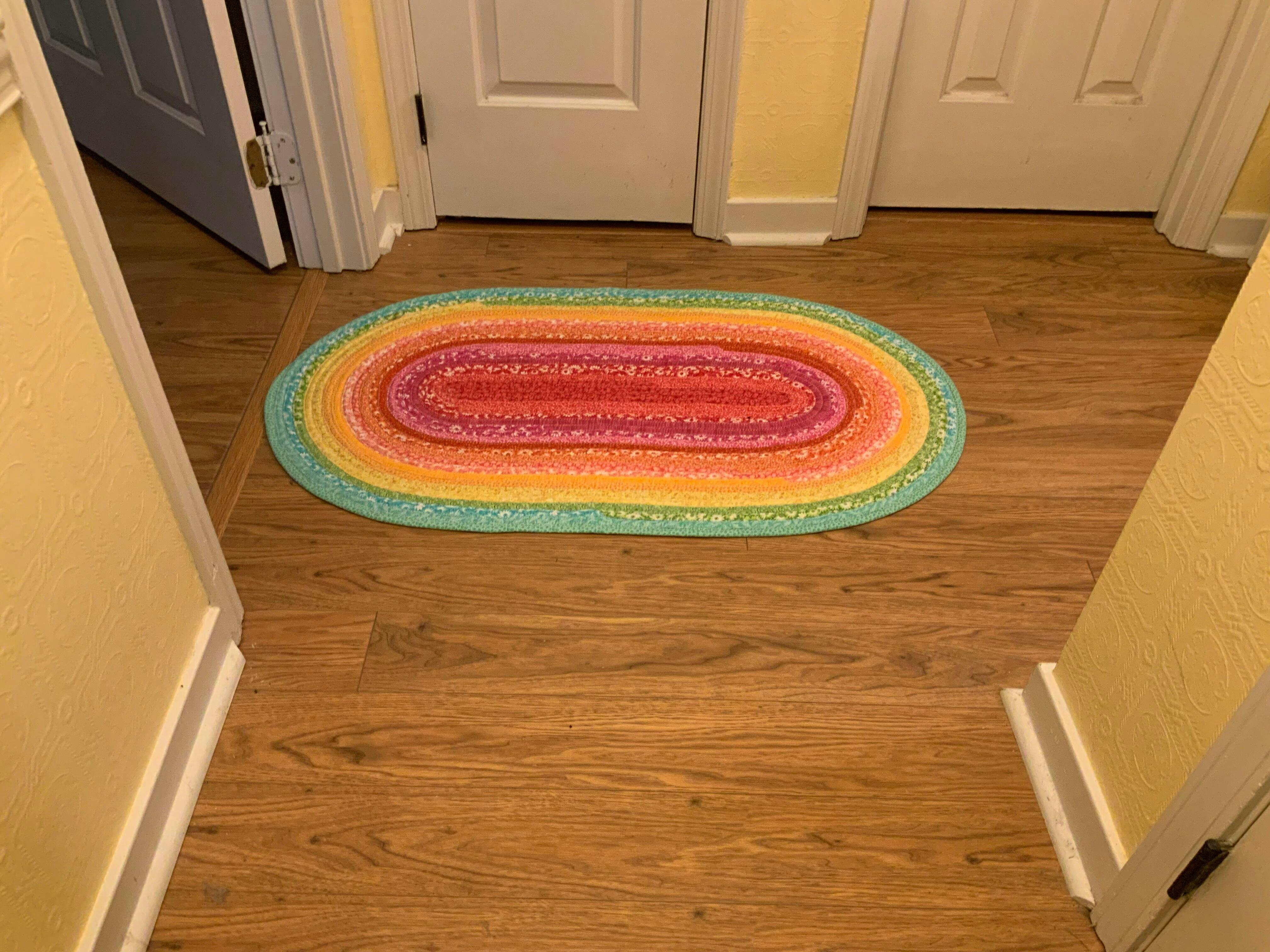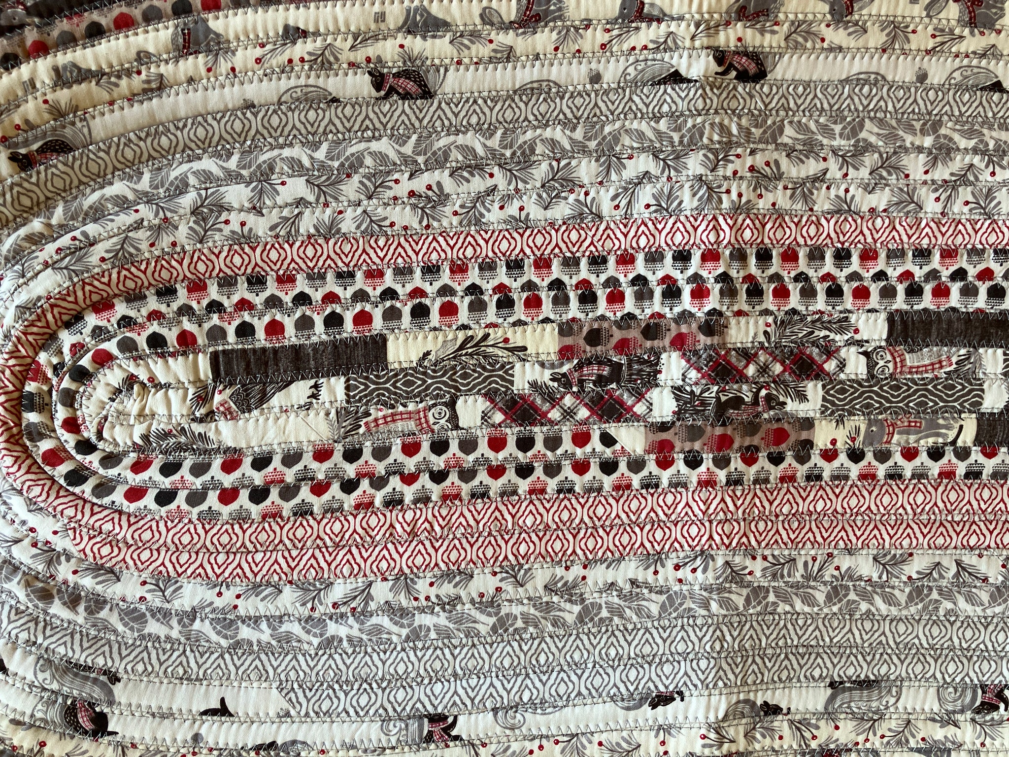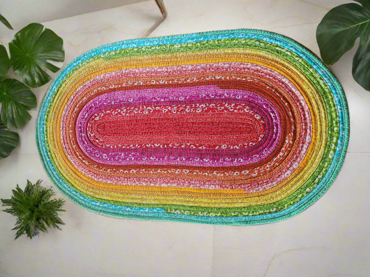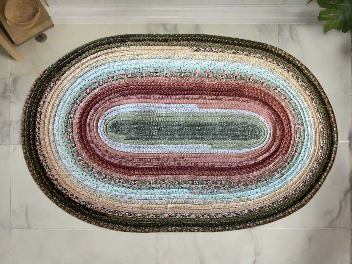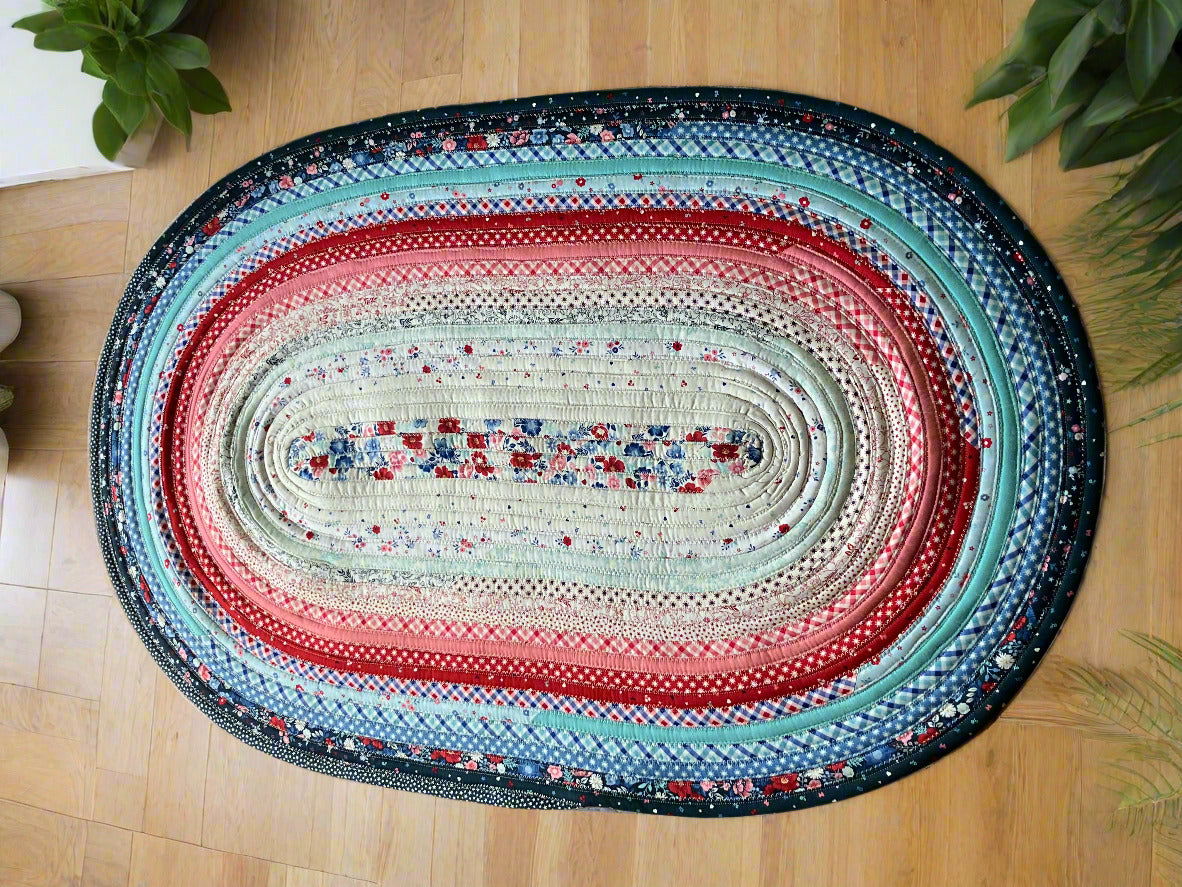 100% cotton fabric, 80% cotton/20% polyester batting make these beautiful, super durable, jelly roll rugs light weight and easy to throw in the wash.